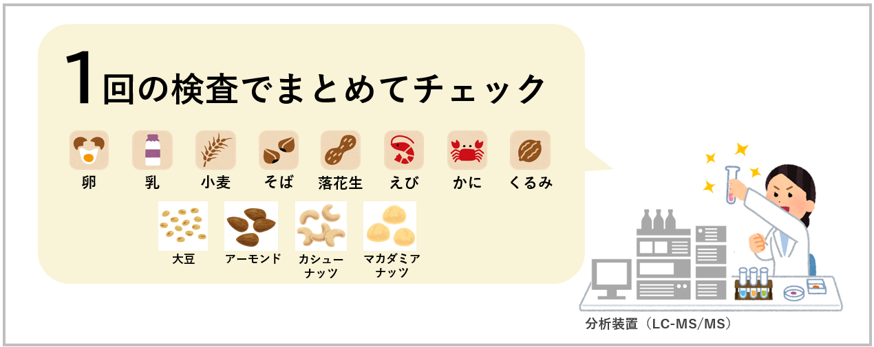 特定原材料を検査する場合、アレルゲンごとに7種類※の個別検査が必要になり、コストや時間がかかってしまいます。